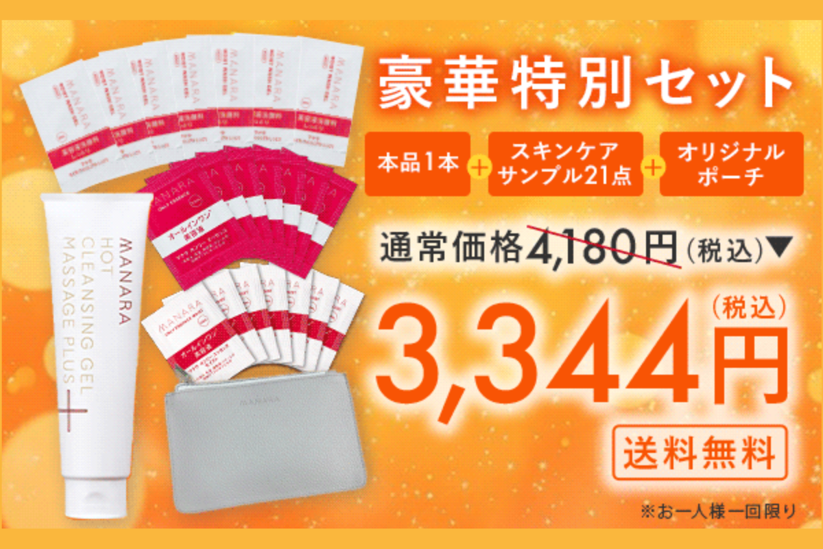 - 通常価格4180円→定期便3,344円!さらに、はじめてのご注文の方限定でスキンケアサンプル21点+コットン+マナラオリジナルポーチ付き