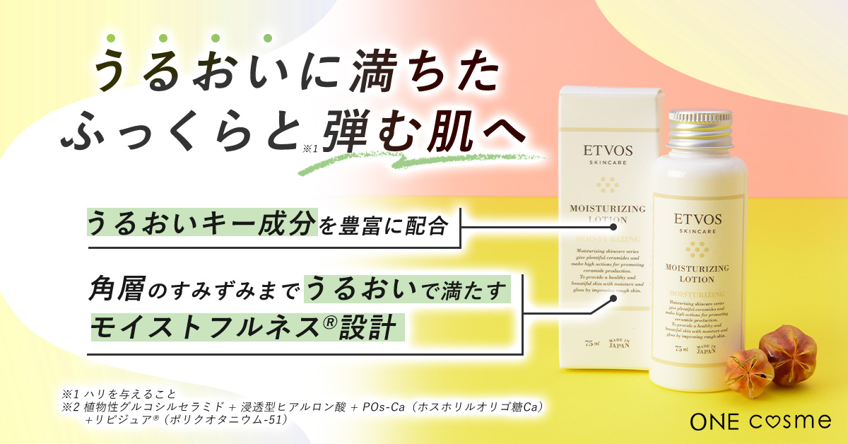 ETVOSのモイスチャライジングローションは特に保湿力に優れており「セラミド」をメインとした保湿成分で水分の蒸発を防ぎ、20代の肌に十分なうるおいを与えます。