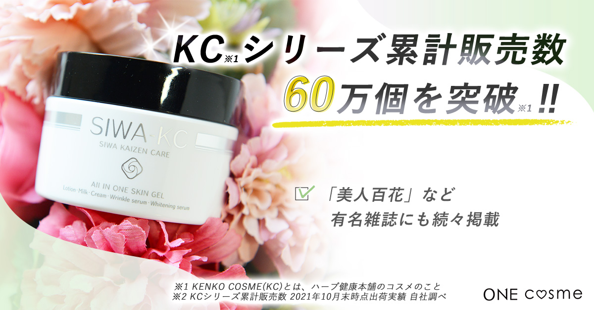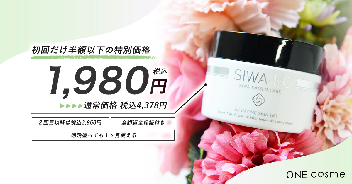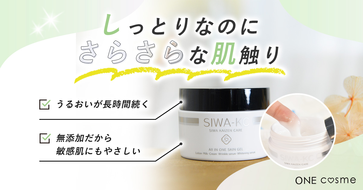 SIWA-KCは日本で初めてシワ改善効果が厚生労働省から認められた医薬部外品のオールインワンジェルで、化粧水から乳液、クリーム、美容液の役割をこなします。