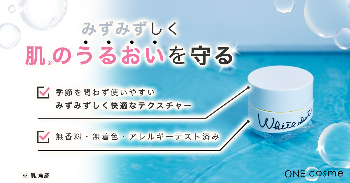 暑さによる日焼けを予防しながら、シミやそばかすの予防を期待できるホワイトショットRXSは、夏の美白(※)ケアにかかせない存在です!夏であっても夏のクーラーの風などによって乾燥を感じる女性は多いですよね。角質から保湿をして、ぷるんと潤う透明肌になりましょう!