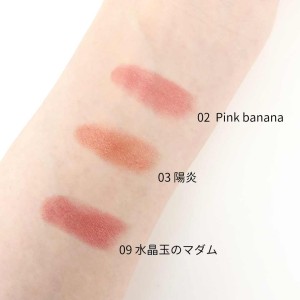 ブルベの方には、シックなローズカラーの「05 ダークフィグ」、品格と落ち着きのあるくすみ系ローズレッドの「07 ラスボス」が、イエベの方にはやさしい血色感のあるピンクベージュの「02 Pink banana」や、やわらかいブラウンの「15 綿雲33000ft」が人気です。