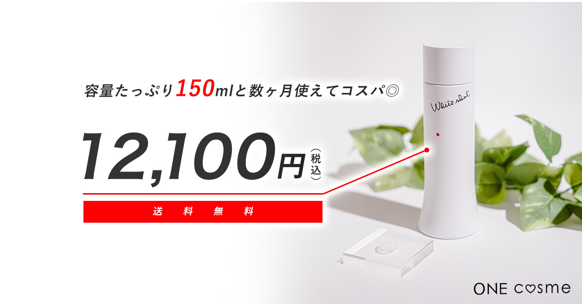 本体価格は150mlで12,100円(税込)、やや割高に感じますが、1本で約2ヶ月半使えるため1日あたりのコスパは121円とそこまで高くありません。10年ぶりに認められた高度な美白(※)有効成分と、美肌に導く豊富な美容成分が入っていることを考えると納得のいく価格と言えます。