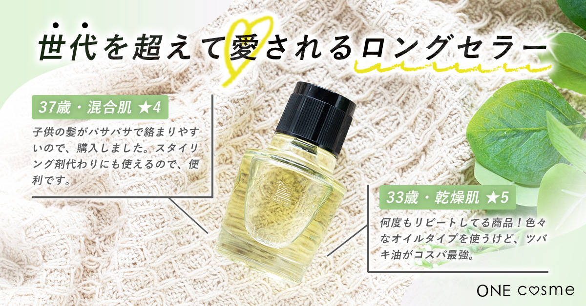 大島椿オイルは1927年から愛される100%植物性オイルです。髪だけでなく、頭皮や肌ケアにも使用可能な万能オイルです。@cosmeではベストコスメ殿堂入りや、ヘアスタイリング部門では6位を獲得しています。