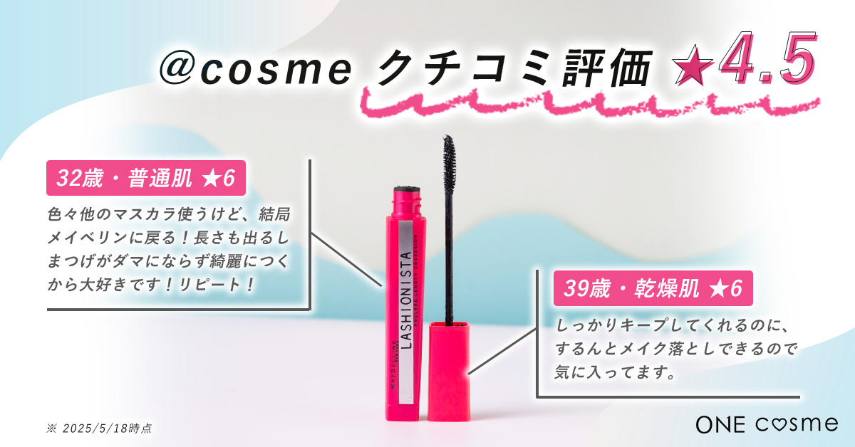 @コスメの口コミ数は4000件オーバー。評価も☆4.8を記録するなど評価を集めています。メイベリンのマスカラシリーズの中でも最も高い人気を誇っています。