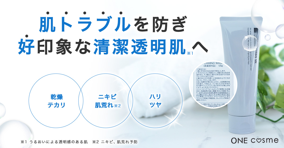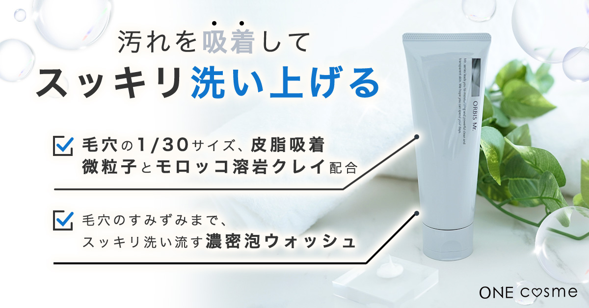 オルビスミスターフォーミングウッシュは、毛穴の1/30サイズの皮脂吸着粒子とモロッコ溶岩クレイを配合。毛穴の隅々まで吸着洗浄することで、余分な皮脂や汚れを落として、明るく透明感のある肌へ導いてくれます。