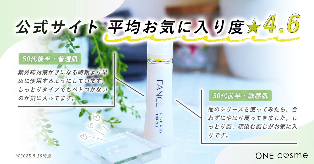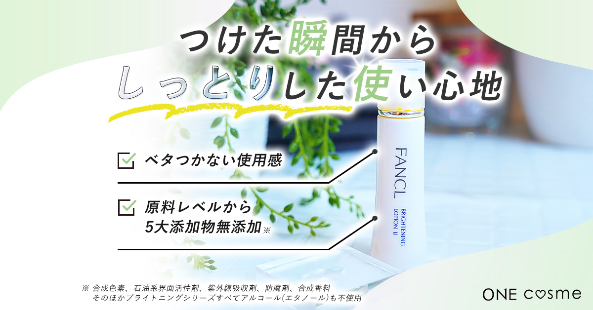 「シミ予防やくすみケアに効果を感じた」「トーンアップしてニキビもできにくくなった」など、肌の変化を実感している方の声が多く見られます。しっとりタイプですがみずみずしいテクスチャーでベタつかないので、オールシーズン使いやすいことも魅力です。 しかし、一部では「1ヶ月もたない」という声も。ブライトニング 化粧液 II しっとりの使用量は100円玉1枚分。一般的な化粧水の使用量は500円玉大を目安としていることが多いため、規定より多く使用してしまう方が多いようですが、ファンケルの化粧液は美容成分が凝縮されているので、少量でも十分肌に行き渡ります◎また、公式ではコットンを使用せず、直接肌に使用することが推奨されています。化粧液がすぐになくなってしまう方は、ぜひ公式で推奨されている使用量・使用方法を試してみてくださいね。