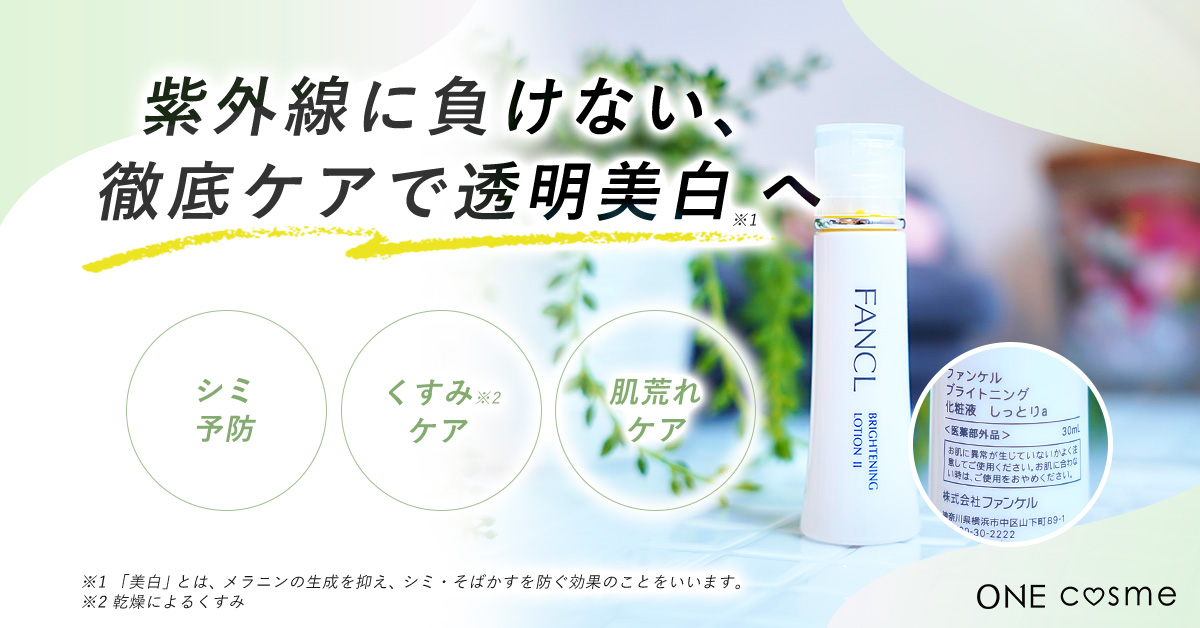 「何を使ってもシミが薄くならなくて悩んでる…」と言う方は、FANCLのブライトニングシリーズを使ってシミやくすみ知らずの透明美肌を目指しましょう♪