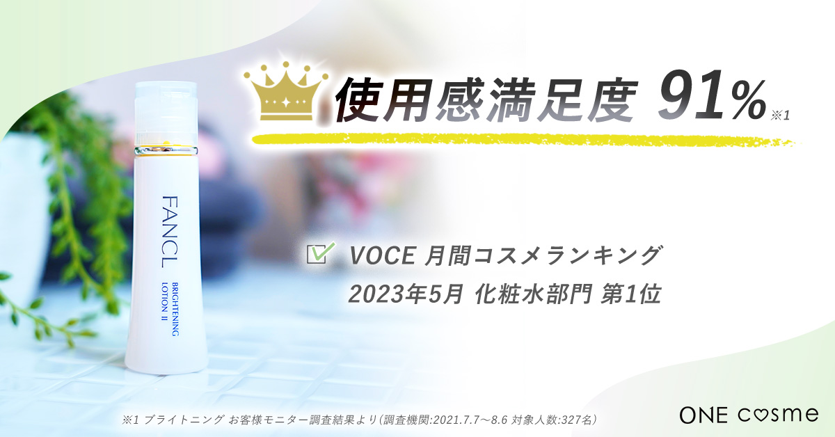 FANCLのブライトニング 化粧液は、VOCE 月間コスメランキング 2023年5月化粧水部門で第1位を獲得した医薬部外品の美白化粧水です。
