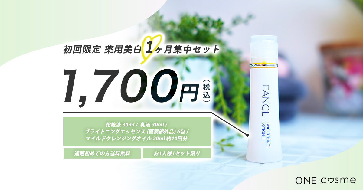さらに公式サイトでは、化粧液・乳液1ヵ月分に加えて、美容液やクレンジングが入った「薬用美白1ヶ月集中セット」が初回限定価格1,700円(税込)で購入できます!