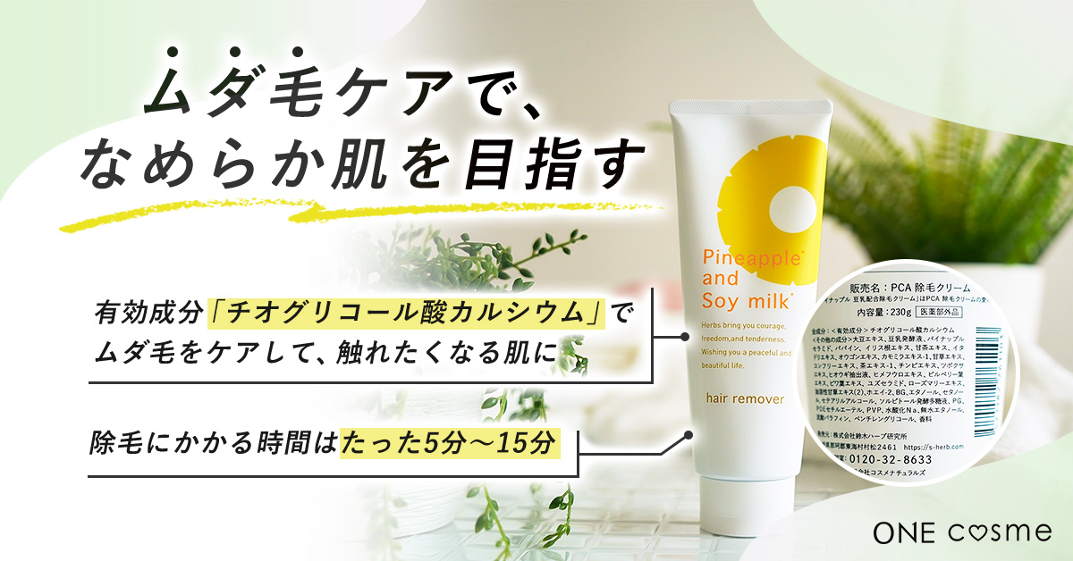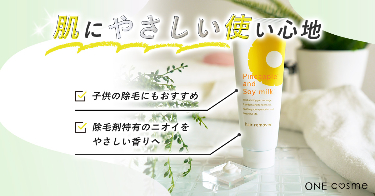 そんな鈴木ハーブ研究所から発売されたパイナップル豆乳除毛クリームは、保湿効果のある大豆エキスを使用し「肌への優しさ」を追求した除毛クリームです。