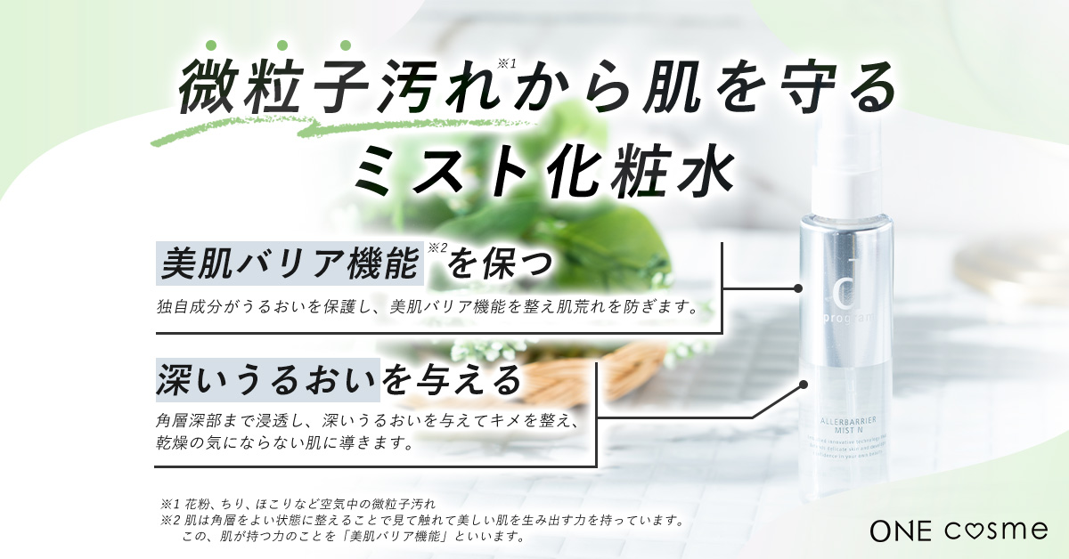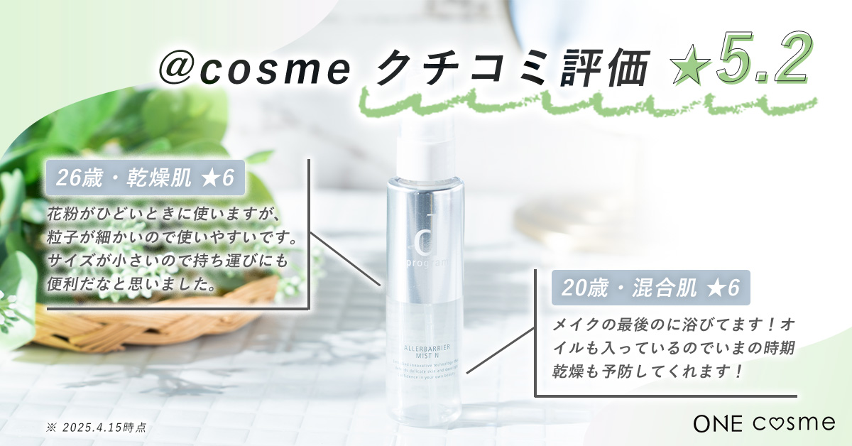 アレルバリア ミストNは、dプログラムが販売している化粧水ミストです。@コスメのベストコスメアワードで2年連続、計3回のベストコスメに輝いています。