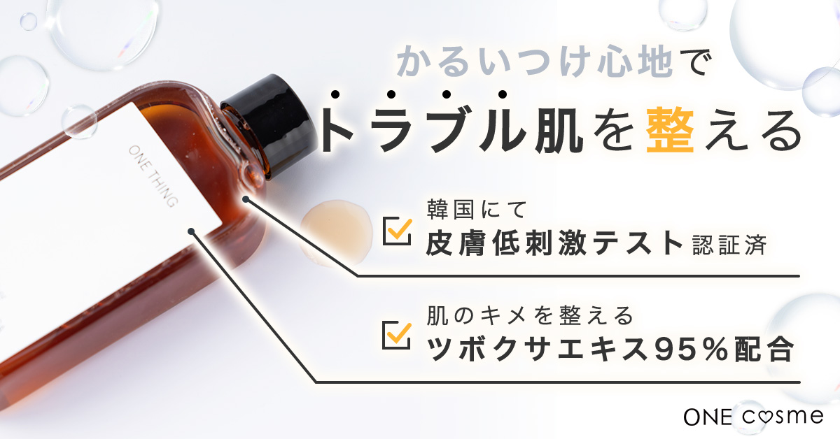 ONETHING(ワンシング)のツボクサ化粧水は、2021年9月の「Qoo10月刊ランキング 化粧水部門第1位」、「ZOZOCOSME AWARD 2022 上半期総合5位」を獲得するなど、SNSを中心に大注目を浴びている低刺激化粧水です。