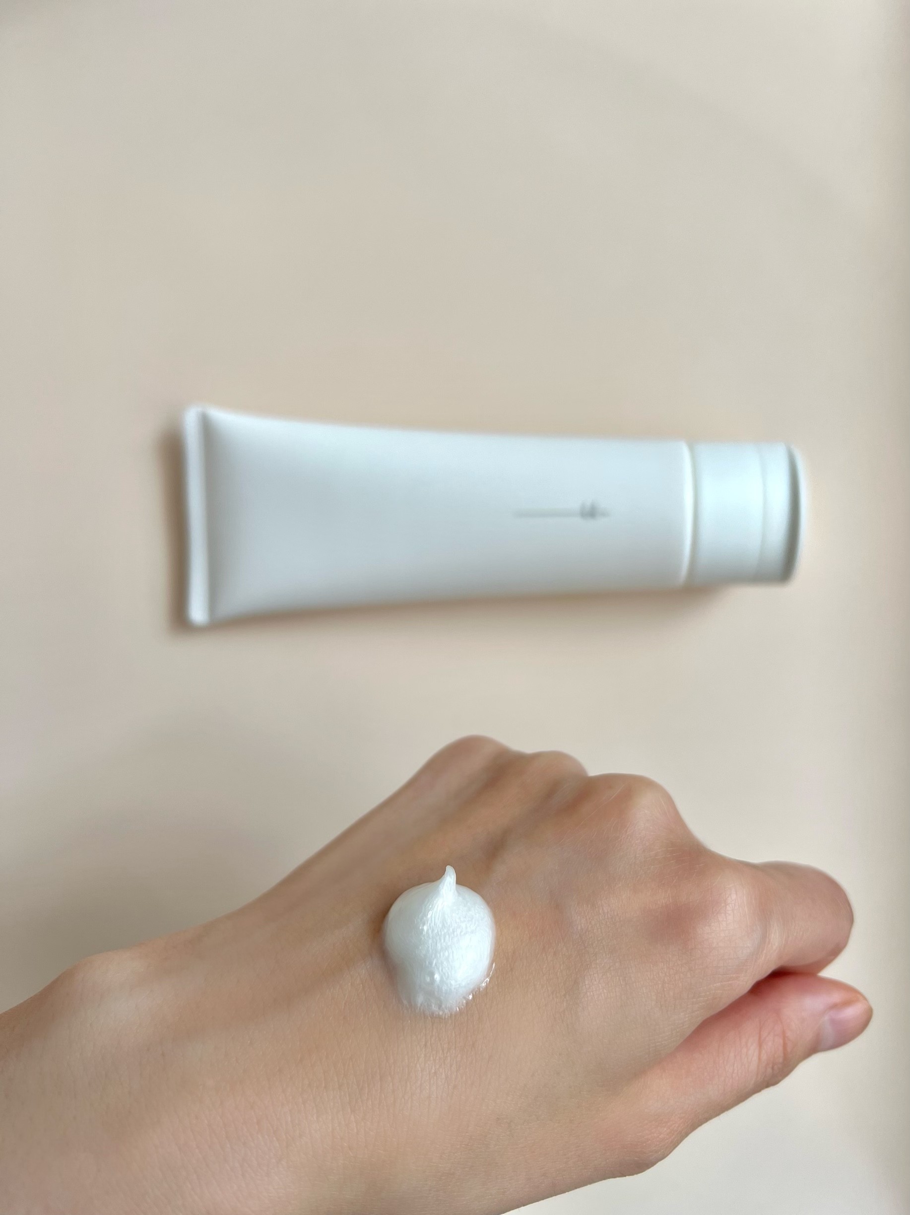 モロッコ溶岩クレイを使用しているとはいえ、真っ白な見た目が特徴。一般的な洗顔料より少し柔らかめのテクスチャーです。真っ白なシンプルなチューブのため、お風呂場や洗面台をおしゃれに演出してくれるのもポイント。泡立ちがよく、きめ細かいモコモコ泡が肌を柔らかく包んでくれます。洗い上がりはさっぱり!無香料なため、香りを気にせず使えます。安全性