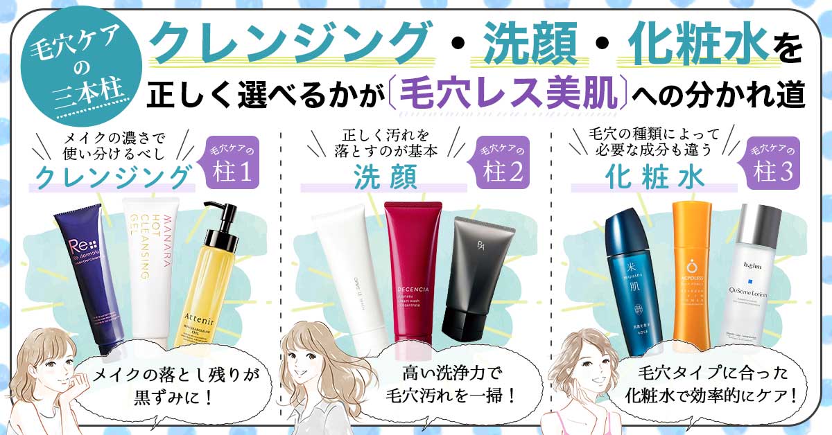 毛穴が目立たない肌になるために欠かせない3つのアイテムの選び方やケアの方法を詳しく解説