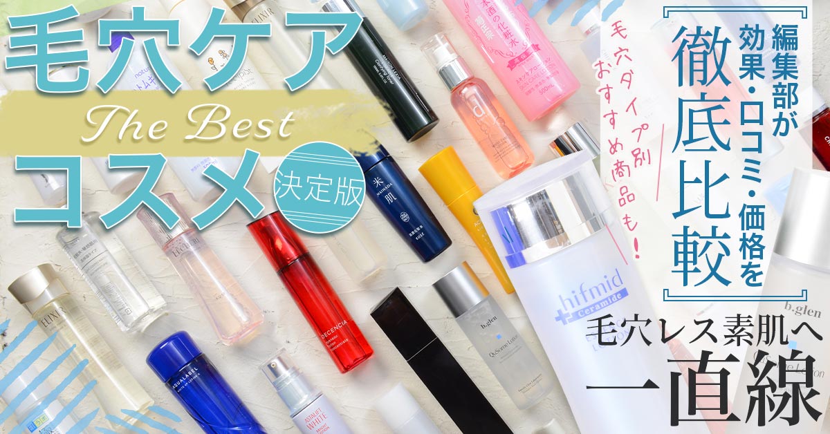今回は、化粧水をはじめとして、乳液やクリーム、洗顔フォーム、美容液なども含めた化粧品のシリーズを、毛穴ケアにおすすめな順にランキング化しました。化粧水だけではなく、「洗顔」で黒ずみや詰まり汚れをしっかりと落とすのはもちろん、「乳液」や「クリーム」を後から使用することによって化粧水の水分の蒸発を防ぐことで、より一層毛穴ケアの効果は高まります。