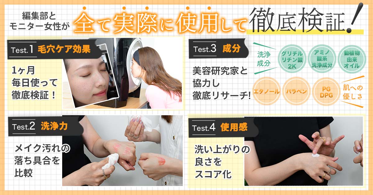 毛穴の目立ち の変化と洗浄力 を中心に、成分 やテクスチャー 、価格 や口コミ などもリサーチしました。