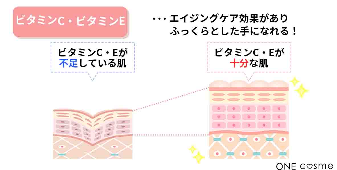 「若返りのビタミン」と呼ばれており、肌の細胞の老化を防いでくれる働きがあります。肌に