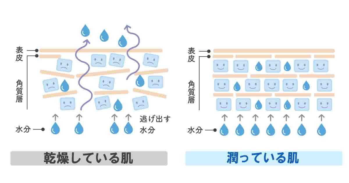 皮膚の角質層は皮脂や汗でできた皮脂膜に覆われて、普段は外的刺激から守られています。ですが、手を洗ったりアルコール消毒をしたりするとこの皮脂膜がウイルスや菌と一緒に洗い流されてしまいます。