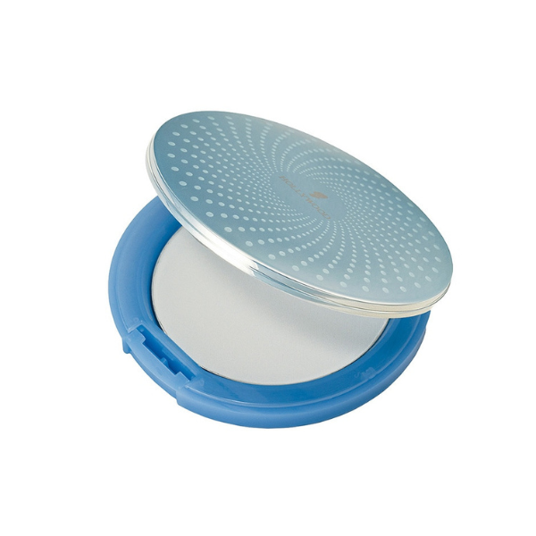 プレストタイプは、顔用のパウダーファンデーションのように型押しして固めた状態のボディパウダーです。