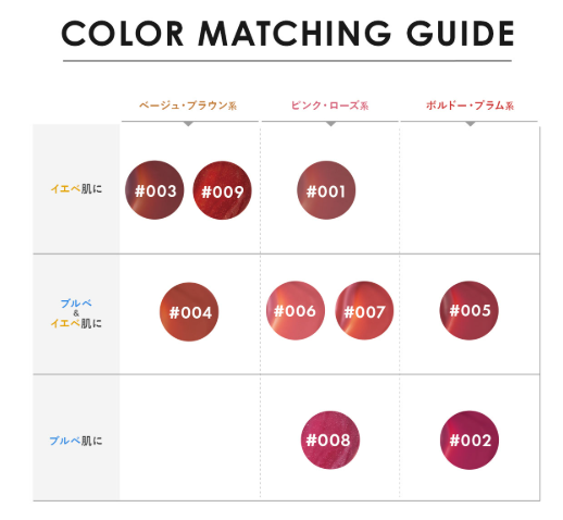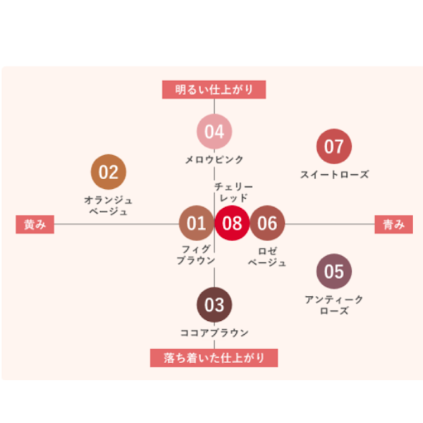 それぞれのリップは、イエベ春にどんなカラーが似合うのか見ていきましょう!