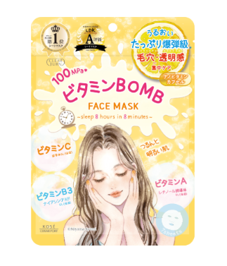 数々のシートマスクを販売しているクリアターンですが、くすみ・毛穴タイプとして登場したのがビタミンBOMBマスクです。「透明感爆弾」といわれるほどうるおい感を与えるシートマスクで、たった8分でたっぷりのビタミンが、まるで8時間熟睡した後の肌みたいな明るいキメの整った明るい肌に導きます。