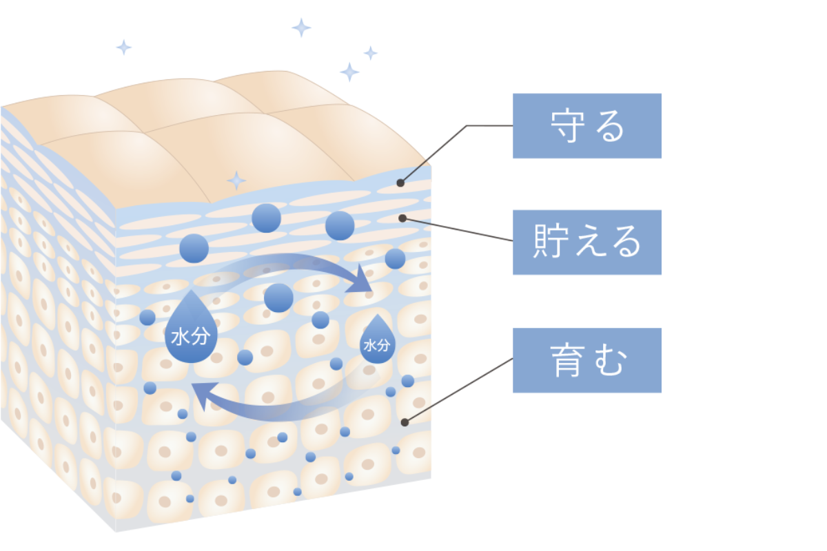 年齢とともに、肌の水分量は減っていきます。肌の乾燥は、シワやたるみなどのさまざまな肌トラブルの原因に。高保湿成分を配合した化粧品で、肌にうるおいを与えて乾燥を防ぐことが大切です!